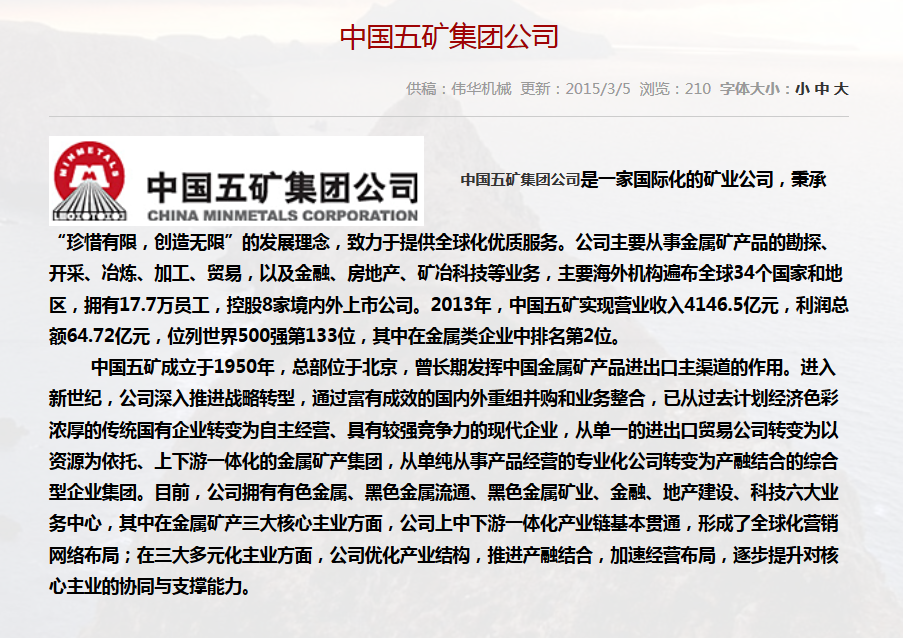 合作單位:中國五礦集團(tuán)公司