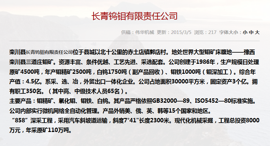 合作單位:長青鎢鉬有限責(zé)任公司